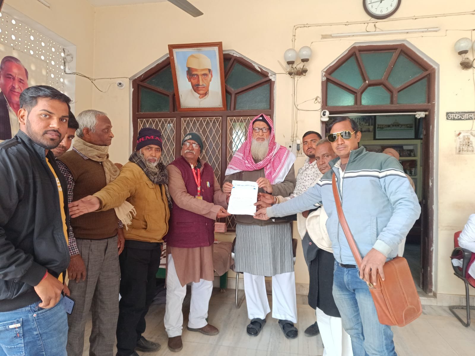 भांवरकोल। ग्रामीण पत्रकार तहसील इकाई मुहम्मदाबाद का एक प्रतिनिधिमंडल तहसील अध्यक्ष रामविलास पांडेय के नेतृत्व में आज क्षेत्रीय विधानसभा विधायक सुहेब अंसारी (मन्नू अंसारी) के आवास पर पहुंचा। विधायक की अनुपस्थिति में प्रतिनिधिमंडल ने उनके प्रतिनिधि एवं पूर्व विधायक सिबगतुल्लाह अंसारी से भेंट कर मुख्यमंत्री उत्तर प्रदेश को संबोधित एक मांग पत्रक सौंपा।