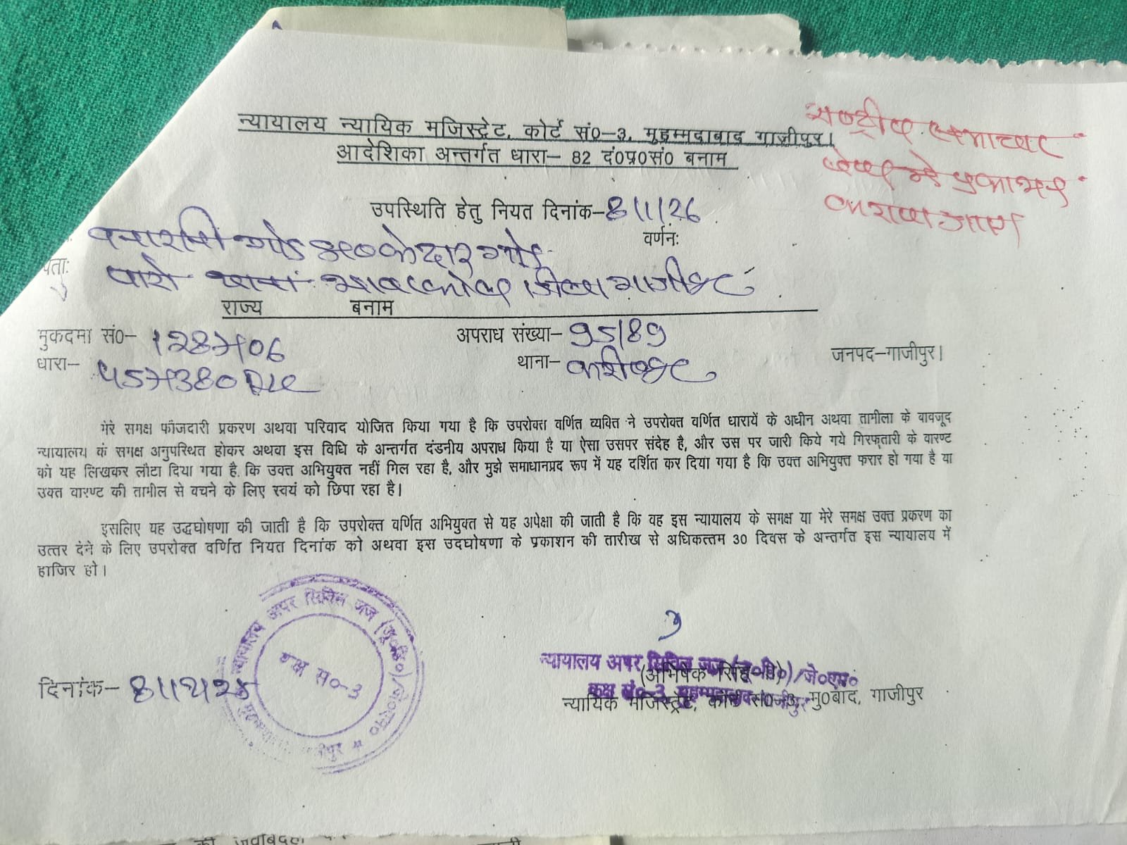 गाजीपुर। भांवरकोल थाना पुलिस ने लंबे समय से फरार चलने वाले एक अभियुक्त के घर न्यायालय के आदेश पर धारा 82 सीआरपीसी के तहत कार्रवाई की है ।पुलिस ने वारंटी के घर पर मुनादी कराकर न्यायालय का नोटिस चस्पा किया।उप निरीक्षक देवी शंकर यादव ने बताया कि यह कार्रवाई भांवरकोल थाना क्षेत्र के ग्राम पारो पोस्ट लौवाडीह निवासी बनारसी गोड़ पुत्र स्व.केदार गोड़ के घर की गई है ।अभियुक्त अपनी गिरफ्तारी से बचने के लिए लगातार फरार चल रहा है ।न्यायालय अपर सिविल जज कक्ष सं 03 मुहम्मदाबाद ने अभियुक्त को एक निश्चित तिथि पर पेश होकर अपना पक्ष रखने का आदेश दिया है ।अगर फिर भी निश्चित तिथि पर अभियुक्त पेश नहीं होता है तो उसकी संपत्ति जप्त कर ली जाएगी ।