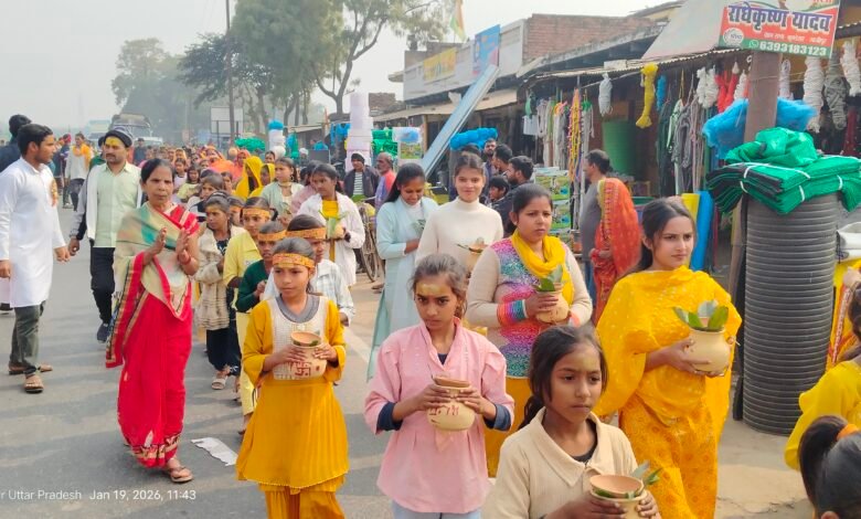 Ghazipur news: भांवरकोल कुंडेसर नौ दिवसीय श्री सीताराम महायज्ञ का भव्य शुभारंभ, कलश यात्रा में उमड़ा आस्था का सैलाब