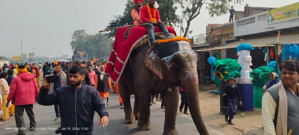 सुबह से ही यज्ञशाला परिसर में श्रद्धालु महिलाओं, कन्याओं एवं पुरुषों की भारी भीड़ उमड़ पड़ी। सिर पर कलश धारण किए श्रद्धालु पारंपरिक वेशभूषा में बैंड-बाजे, ढोल-नगाड़ों हाथी घोड़े और धार्मिक जयघोष के साथ गांव के प्रमुख मार्गों से होते हुए कलश यात्रा में शामिल हुए। यात्रा की भव्यता देखते ही बन रही थी। कलश यात्रा की अगुवाई गजराज हाथी कर रहे थे, जो श्रद्धालुओं के आकर्षण का केंद्र बने रहे। मार्ग के दोनों ओर ग्रामीण श्रद्धा भाव से कलश यात्रा का दर्शन करते नजर आए।