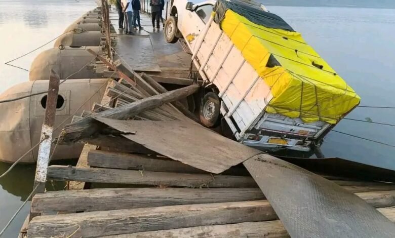 भांवरकोल (गाजीपुर ) फिरोजपुर बारा गंगा तट पर बना पीपा पुल गुरुवार देर रात क्षतिग्रस्त हो गया। पुल का स्लीपर टूट जाने से पशुओं से लदा एक पिकअप वाहन उसमें फंस गया। संयोगवश वाहन गंगा की धारा में नहीं गिरा, जिससे एक बड़ा हादसा टल गया।