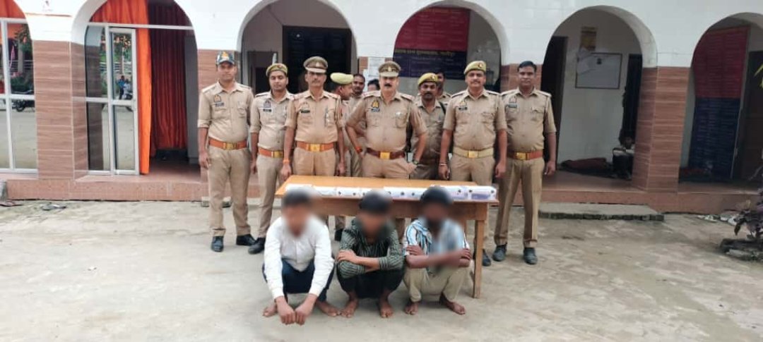 गाजीपुर। अपराध एवं अपराधियों के विरुद्ध चलाए जा रहे अभियान के तहत थाना मुहम्मदाबाद पुलिस ने शुक्रवार 17 अक्टूबर 2025 को बड़ी सफलता हासिल की। पुलिस टीम ने मीरगंज रेलवे क्रॉसिंग काली माता मंदिर के पास से अन्तर्राज्यीय गिरोह के तीन अभियुक्तों और एक बाल अपचारी को चोरी के माल व अवैध असलहा-कारतूस के साथ गिरफ्तार किया।