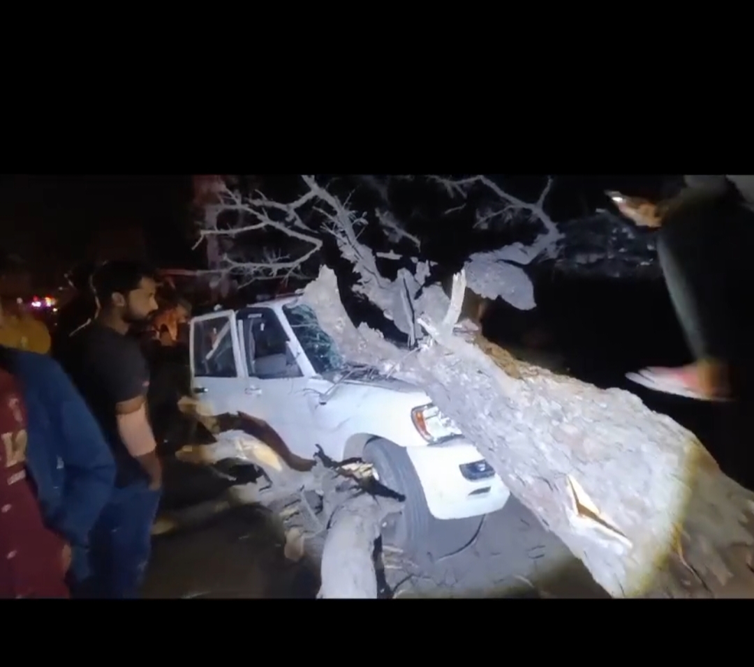 गाजीपुर। भांवरकोल थाना क्षेत्र के भांवरकोल चट्टी के पास शुक्रवार की शाम करीब 7 बजे गाजीपुर -भरौली (NH31) मार्ग पर वर्षों पुराना इमली का पेड़ धराशाई हो गया। इमली के पेड़ गिरने से आवागमन बाधित हो गया और ट्रकों का लंबा जाम लग गया। पेड़ गिरने के दौरान ही रोड से गुजर रही एक स्कॉर्पियो भी चपेट में आ गई है जिसमें एक किशोर(लाल मोहर गोड़ निवासी भांवरकोल) बुरी तरह से घायल है जिसे परिजन इलाज हेतु मऊ के किसी निजी अस्पताल लेकर गए हैं। इस हादसे में स्कॉर्पियो(UP50AE2021) क्षतिग्रस्त हुई है और चालक बाल बाल बच गया है। स्कार्पियो चालक छांगुर यादव ने बताया कि वह भांवरकोल से प्रयागराज महाकुंभ जा रहा था तभी इमली के पेड़ के चपेट में आ गया।ज्ञात हो कि भांवरकोल चट्टी पर हफ्ते में दो रोज बृहस्पतिवार और सोमवार को बाजार भी लगती है।गनीमत रही की बाजार का दिन नहीं था नहीं तो एक बड़ा हादसा हो जाता। पेड़ गिरने की सूचना पर थानाध्यक्ष विवेक कुमार तिवारी दलबल के साथ मौके पर पहुंचे और आवागमन को सुचारू बनाने में लग गए। पुलिस की सूचना पर बढ़नपुरा गांव का रहने वाला कैलाश शर्मा का पुत्र अपनी लकड़ी कटर मशीन के साथ पहुंचा और पेड़ की कटाई शुरू कर दी। मौके पर आसपास के लोगों की भारी भीड़ और पुलिस बल मौजूद है। इस मौके पर थानाध्यक्ष विवेक कुमार तिवारी ने बताया कि जल्दी ही पेड़ को हटाकर आवागमन बहाल कर दिया जाएगा।