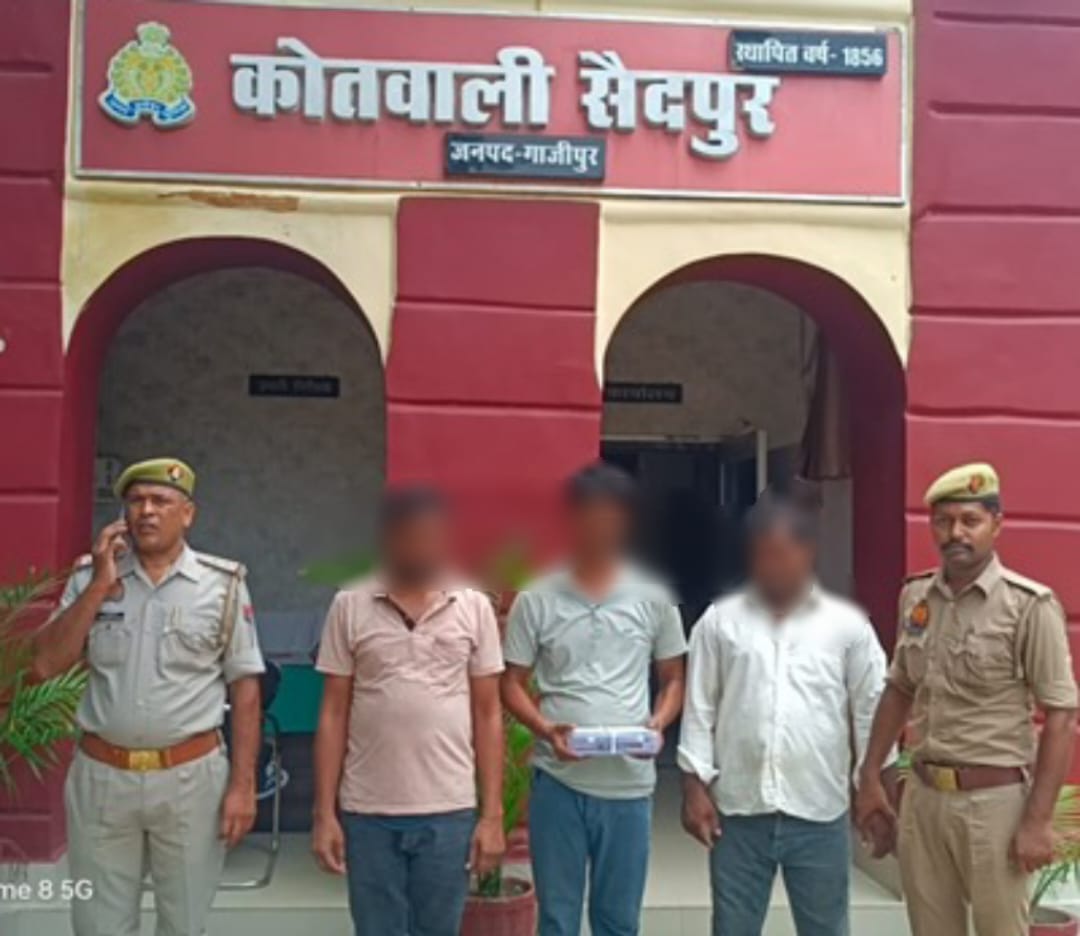 तीनों आरोपियों के विरुद्ध पहले से ही थाना सैदपुर में मु0अ0सं0 200/2025 के तहत धारा 109(1), 115(2), 351(3), 352, 191(2) BNS में मुकदमा दर्ज है। गिरफ्तारी के बाद बरामद असलहे के आधार पर धारा 61(2) BNS एवं 3/25 आर्म्स एक्ट की बढ़ोतरी की गई है।