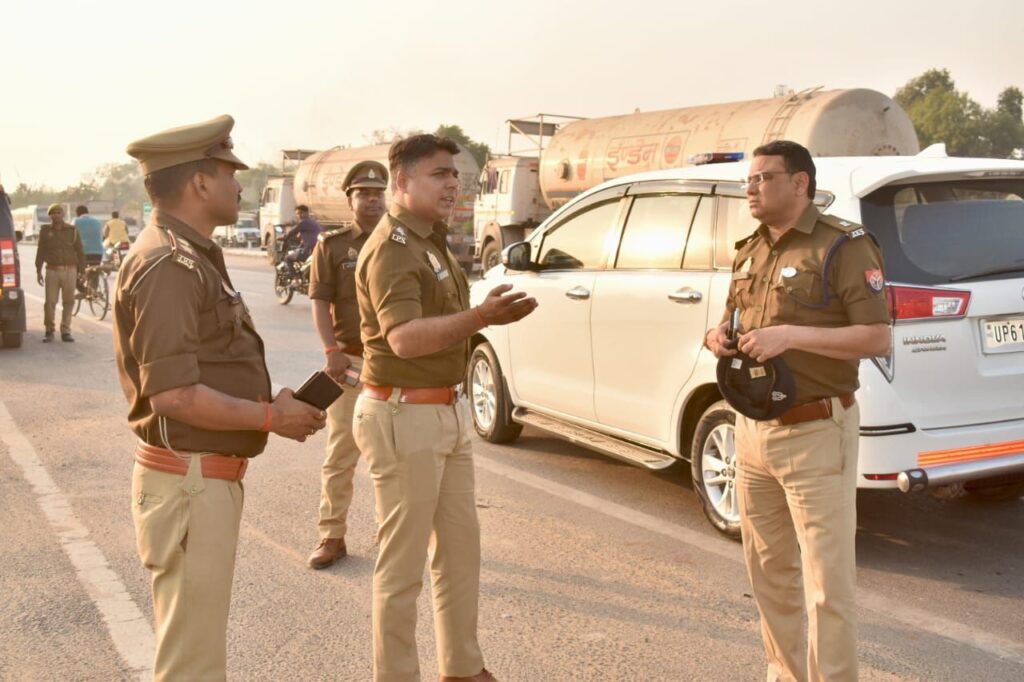 *गाजीपुर*।पुलिस अधीक्षक बलिया ओमवीर सिंह एवं पुलिस अधीक्षक गाजीपुर डॉ ईराज राजा के द्वारा पुलिस बल के साथ भांवरकोल थाना क्षेत्रांतर्गत गाजीपुर एवं बलिया बार्डर पर कुंभ मेला के दृष्टिगत जाम लगने वाले सम्भावित क्षेत्रों में सुगम ट्रैफिक एवं डायवर्जन के संबंध में सुरक्षा व्यवस्था का निरीक्षण किया गया। इस मौके पर पुलिस अधीक्षक ग्रामीण गाजीपुर अतुल सोनकर, थाना पदाधिकारी भांवरकोल विवेक कुमार तिवारी, यातायात प्रभारी मनीष त्रिपाठी एवं अधिकारी कर्मचारी उपस्थित रहे।